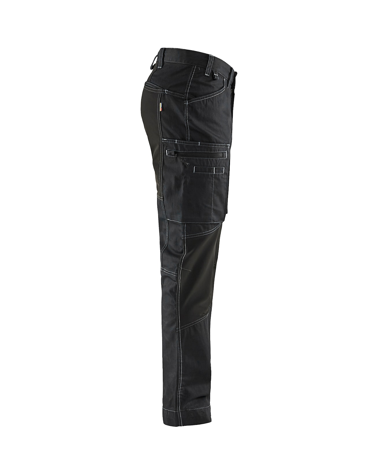 Housut ovat kapeammat istuvuudeltaan ja polvet ovat valmiiksi muotoillut mukavuuden lisäämiseksi. Liikkuvuuden parantamiseksi housuissa on joustavat osiot takana, polvissa ja haaroissa. Kangas on CORDURA® Denimiä, joka on neljä kertaa vahvempaa kuin tavallinen farkkukangas.