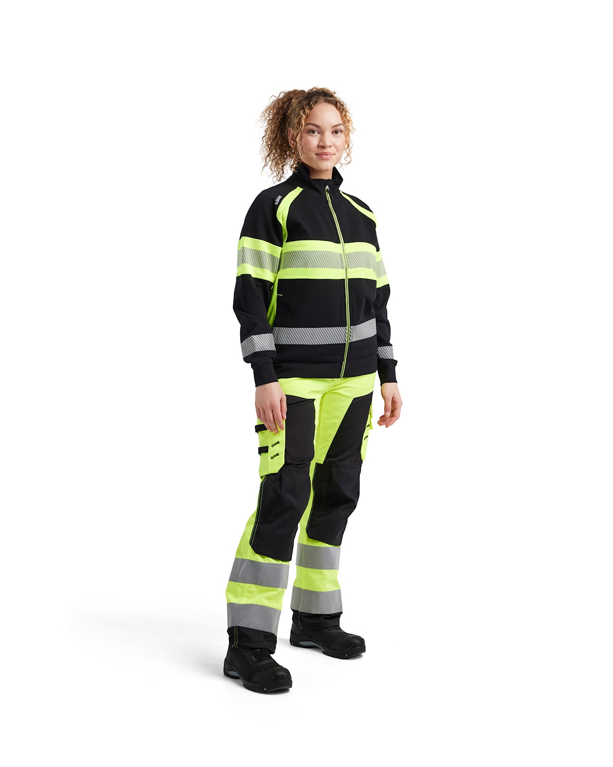 Pehmeä ja mukava puuvillainen naisten highvis college, jossa on katkonaiset heijaistimet joustavuuden ja hengittävyyden lisäämiseksi. Taskut sivuilla, korkea kaulus, pitkä vetoketju edessä sekä resorit helmassa ja hihoissa. Tummat alueet on 100% puuvillaa ja heijastavat alueet 100% polyesteriä. Sertifioitu EN ISO 20471, luokka 1. Miesten malli 3551.