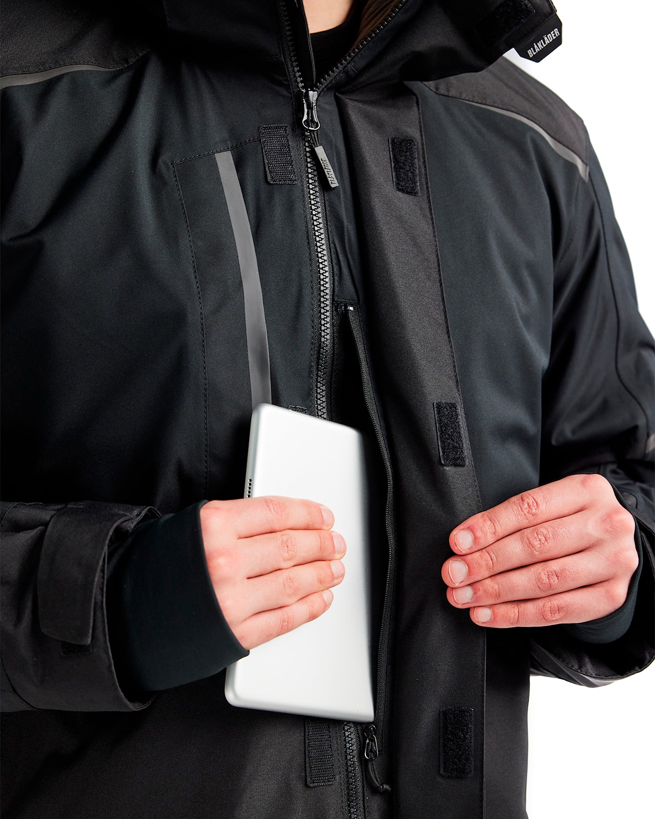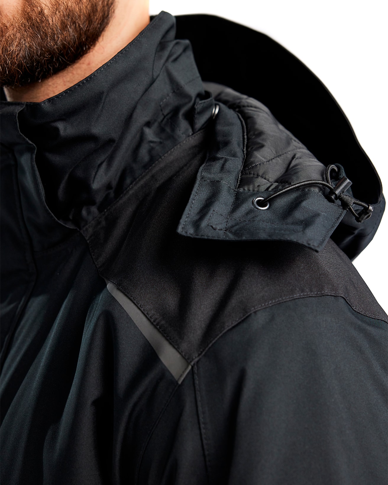 Erittäin toiminnallinen tuulen- ja vedenpitävä talvitakki, jossa on teipatut saumat, korkea fleecevuorattu kaulus ja irrotettava ja säädettävä huppu. Tikkivuori, jossa verkkokangas selän yläosassa ja kainaloissa hengittävyyden parantamiseksi. Useita erilaisia taskuja. Tarroilla säädettävät hihansuut resoreilla ja peukalonaukoilla. Heijastavat painatukset valituissa kohdissa näkyvyyden lisäämiseksi. Sertifioitu EN 342 (Suojaus kylmältä) yhdessä talvihousun 1810 kanssa ja EN 343 (Suojaus sateelta).