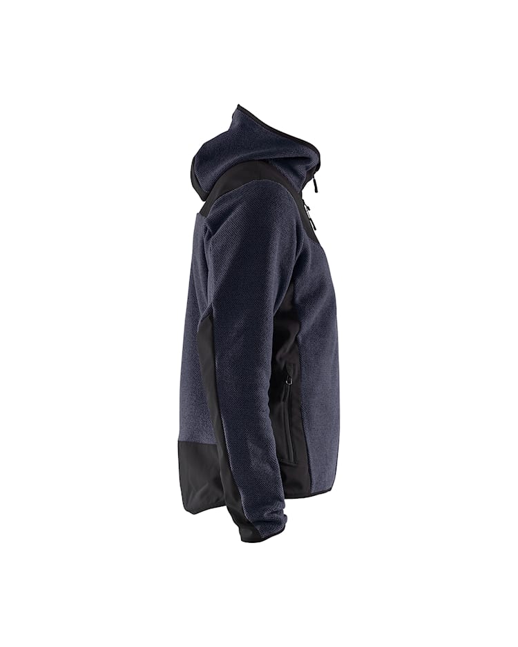 Neulottu takki hupulla, nuorekkaalla ilmeellä ja mukavan tuntuisella fleecemateriaalilla. Takissa on kaksisuuntainen vetoketju edessä ja materiaali on uutta, kolmiulotteista fleeceä. Harjattu materiaali antaa takille makean ilmeen 3D-kuviolla, materiaali on joustava, mukavan tuntuinen ja lämmin. Softshell-materiaali hihoissa, hartioilla ja selän alaosassa antaa lisäkestävyyttä. Kainaloissa ei ole softshelliä, mikä parantaa hengittävyyttä. Takissa on paljon tilaa painatuksille ja sopii niin työhön kuin vapaa-ajalle.