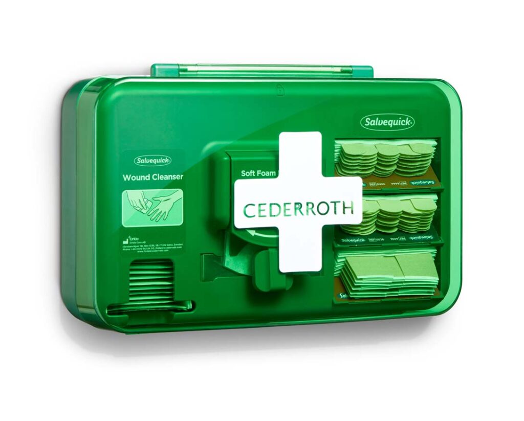 Cederroth Haavanhoitoautomaatissa on kätevästi kaikki mitä tarvitset pienten haavojen hoitoon. Runsas määrä eri kokoisia ja tyyppisiä laastareita harventaa täyttötarvetta- ja varmistaa, että tuotteita on pidempään saatavilla. Lisänä haavapyyhkeet haavan puhdistukseen. Pakkaukset ovat lukitussa automaatissa, tuotteet käyttövalmiina ja helposti otettavissa lialta ja kosteudelta suojaavan kannen alla. Helppo ja kätevä ratkaisu ensiapuasemien täydentäjänä työpisteissä, joissa laastareiden tarve on ilmeinen.