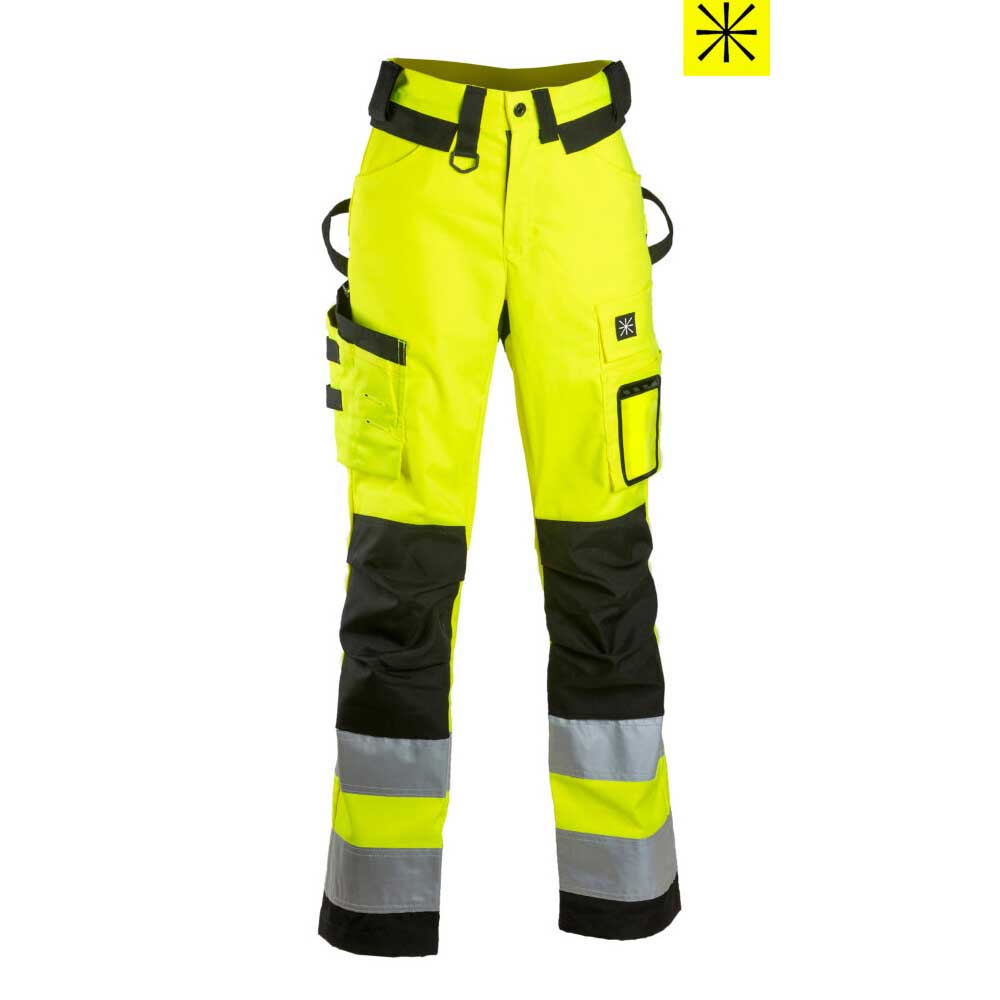 Dimexin naisten huomioväriset stretch työhousut ovat täydellinen valinta naisille, jotka arvostavat sekä mukavuutta että turvallisuutta työvaatteissaan. Niiden joustava ja kestävä materiaali sekä käytännölliset ominaisuudet tekevät näistä työhousuista ihanteellisen vaihtoehdon vaativiin työskentelyolosuhteisiin. Lahkeensuut ja polvet on vahvistettu Cordura-kankaalla, joten kulutukseen joutuvat kohdat kestävät ehjänä vaativassakin hommassa. Näihin työhousuihin saa yhdistettyä 4483+ irtoriipputaskut.