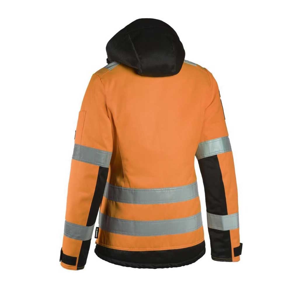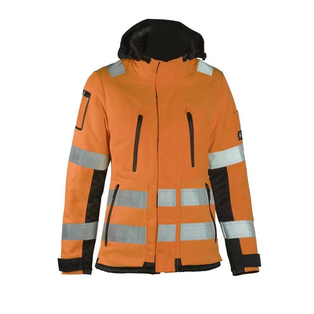 Dimexin hyvännäköinen ja toimiva työtakki naisille. Istuvuutta voi muokata vyötärön ja helman joustonyörisäädöllä. Kangas on vettä ja likaa hylkivää ja sisältä löytyy lämmin Thinsulate-tikkivuori. Työtakin monikäyttöisyyttä lisää vetoketjukiinnityksellä oleva irrotettava huppu.