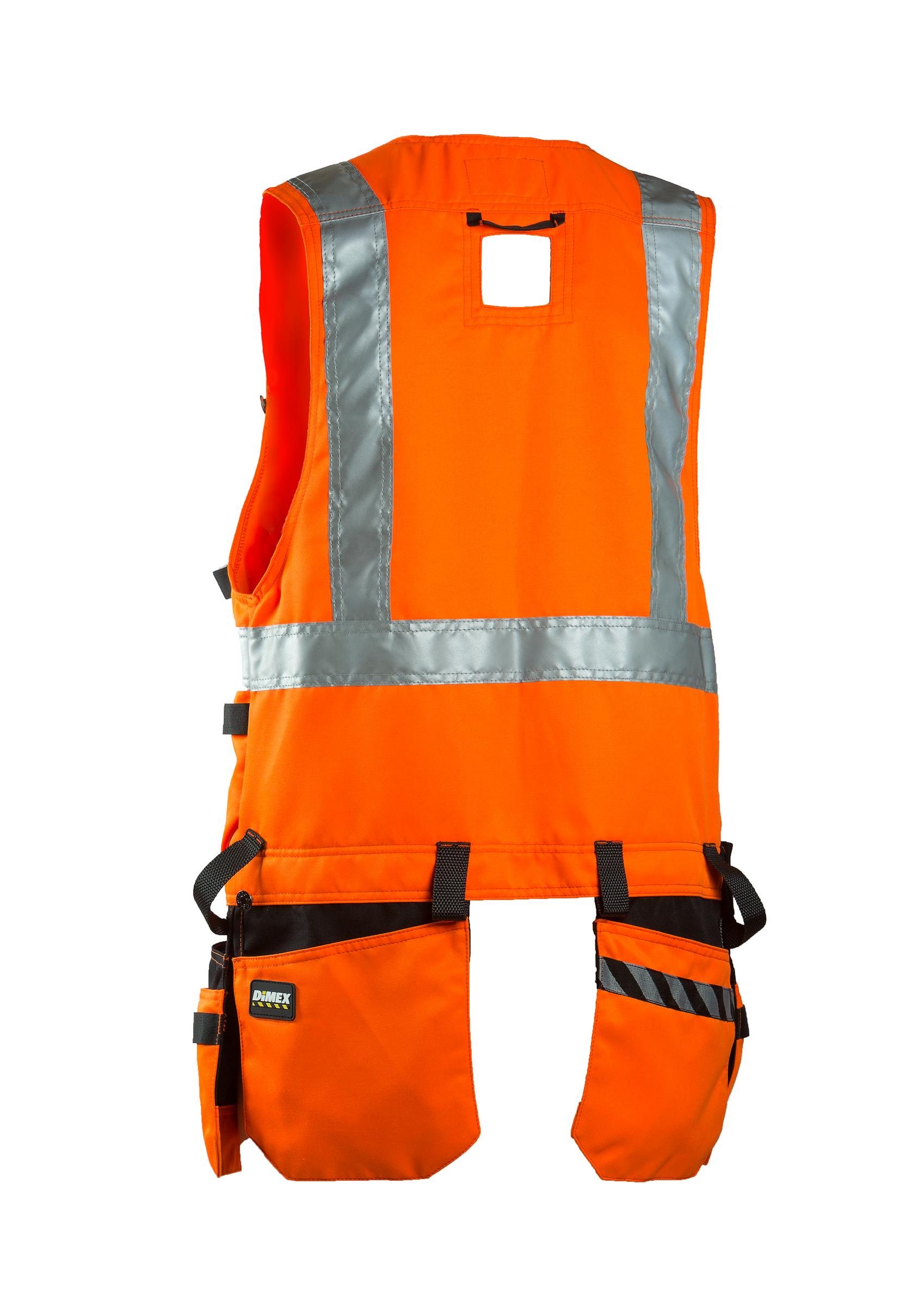 Tule huomatuksi oranssissa riipputaskuliivissä, joka on höystetty kaikilla mahdollisilla taskuilla, joista ikinä uskallat haaveilla. Liivistä löytyy aukko turvavaljaita varten!