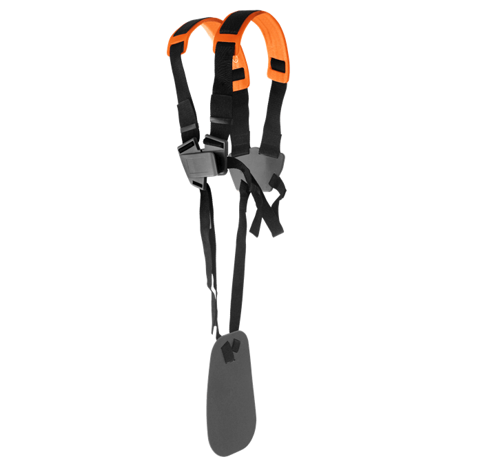 Kevyemmille ruohoraivureille ja trimmereille. Pehmustetut ja säädettävät olkanauhat. Helppo ja nopea käsitellä, edessä pikalukitus.