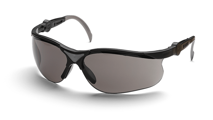 Suojalaseissa on naarmuuntumattomat, harmaasävyiset linssit, jotka soveltuvat hyvin aurinkoisiin olosuhteisiin. Sankojen pituutta voi säätää ja linssit voi kääntää.
