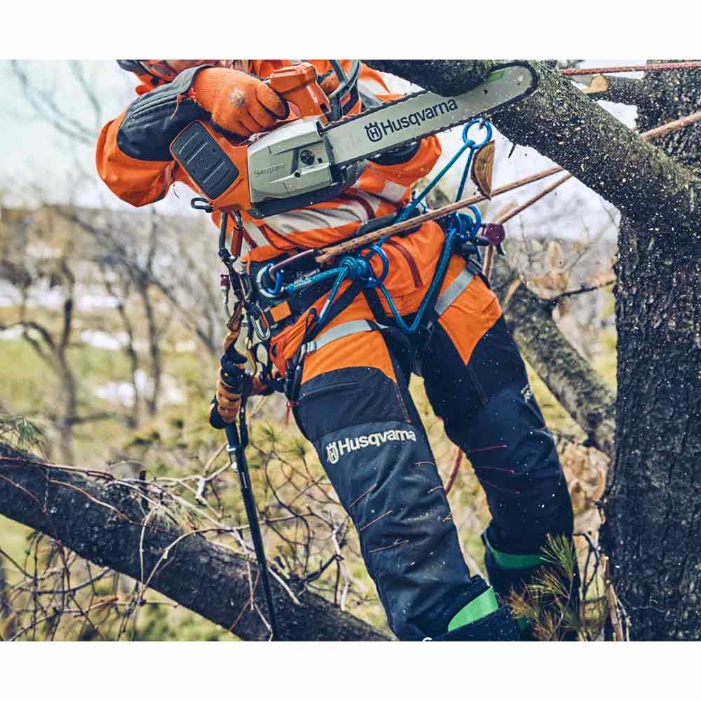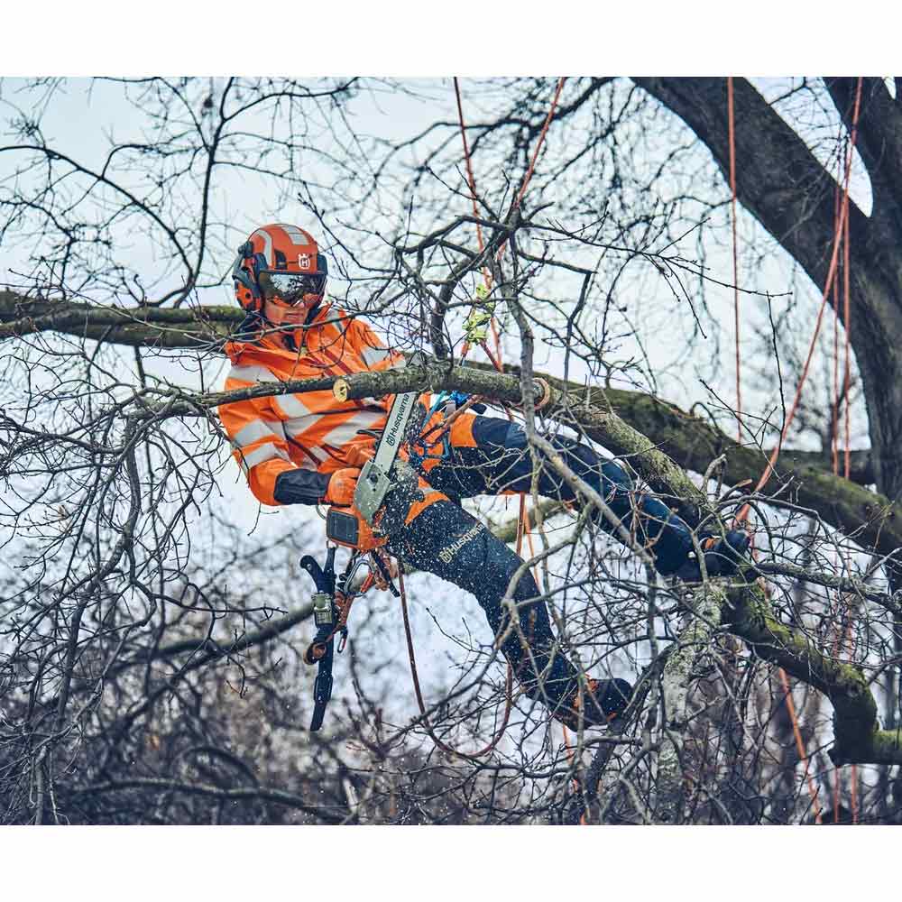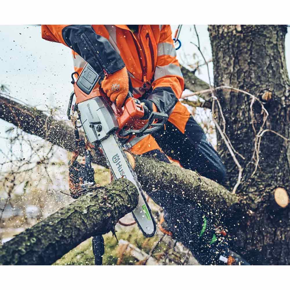 Husqvarna T542i XP® G on maailman ensimmäinen yläkahvallinen keskipakokytkimellä ja lämpökahvoilla varustettu akkumoottorisaha. Se tarjoaa ainutlaatuisen leikkuutehon ja paremman otteen myös kylmällä ilmalla. Tämä näppärä 36 V akulla varustettu yläkahvallinen moottorisaha on erittäin tehokas työkalu ammattimaisille puukiipeilijöille, jotka työskentelevät kylmissä ja kosteissa olosuhteissa. Keskipakokytkimen ansiosta saha tarjoaa kaikki akkusahan edut bensiinisahan helpolla ohjattavuudella ja reaktiokyvyllä höystettynä. Lämpökahvat pitävät kädet lämpimänä ja hanskat kuivina.
