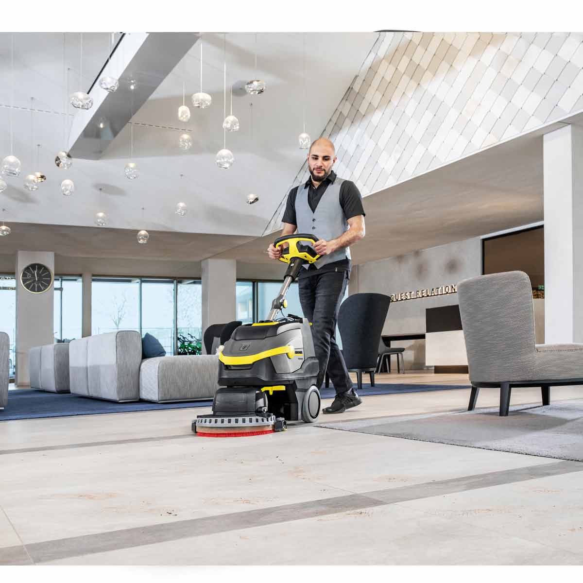 Ketterä, käyttäjäystävällinen ja helpot käyttörutiinit omaava BD 38/12 C yhdistelmäkone on erittäin tehokas työkalu pienten tai ahtaiden alueiden puhdistamisessa. Kone on varustettu 38 cm työleveyden tarjoavalla laikkaharjalla. Uutta tekniikka edustavassa litiumioniakussa on pitkä ajoaika, joten se on kolme kertaa kestävämpi kuin perinteiset lyijyakut. Se on täysin huoltovapaa ja erittäin nopea ladata. eco!efficiency -tila vähentää energiankulutusta, pidentää ajoaikaa ja alentaa melutasoa noin 40%. BD 38/12 C on 35% kevyempi, kuin muut saman kokoluokan koneet. Koneen muotoilu ja kevyt rakenne helpottavat käsittelyä kynnysten ylityksissä ja kuljetuksessa.