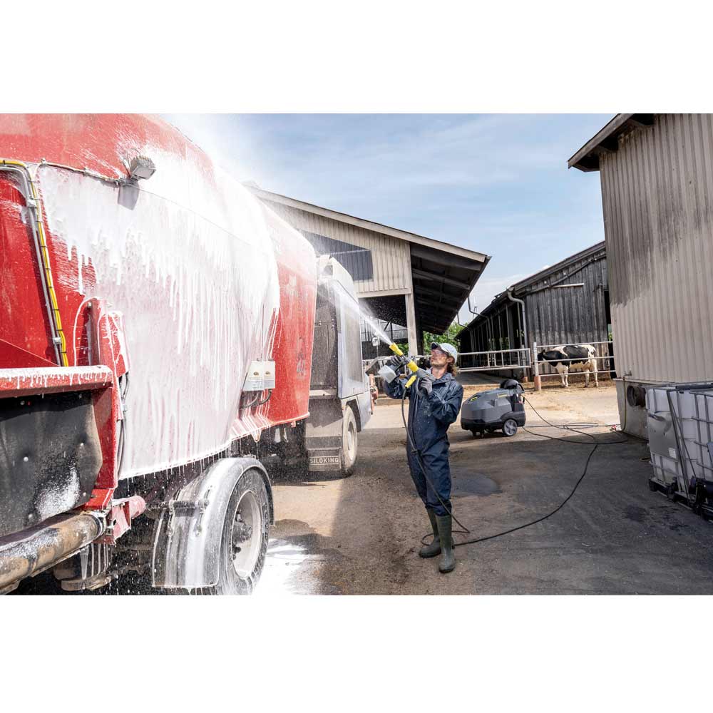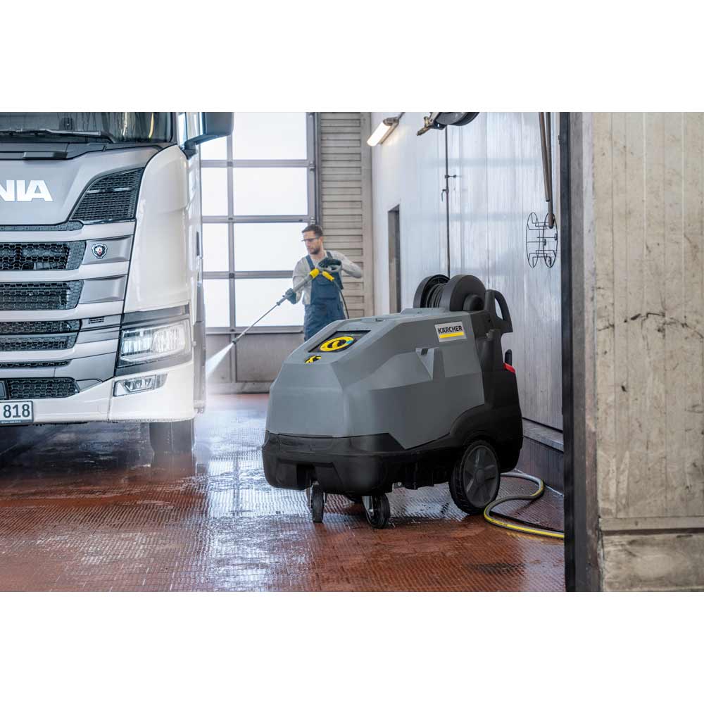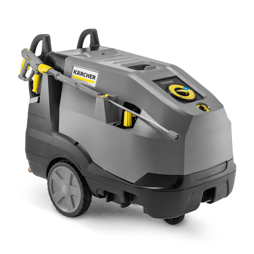 Uudistuneet HDS-kuumavesipesurit on suunniteltu intensiiviseen käyttöön. Ne tarjoavat miellyttävän ja ergonomisen käyttökokemuksen myös vaativissa käyttökohteissa ja pitkäkestoisissa puhdistustehtävissä. Tämän mallin 1000 l/h vedentuotto, 210 baarin työpaine ja tehokas lämmityspoltin on tehokas yhdistelmä likaa irrottava ja sitä kohteesta pois siirtävää voimaa. Tehokkaan pumpun ja suuren lämmityskierukan ansiosta laitteen paine ja vedentuottokyky säilyvät tasaisina myös korkeissa lämpötiloissa. Lämmityspoltin tuottaa myös kuumaa höyryä aina 155 °C saakka. Toimintoja voidaan säätää pikavalintakiekolla ja selkeät valosymbolit informoivat käyttäjää huolloista, mahdollisista poikkeamista ja esimerkiksi säiliöiden täyttötarpeesta. EASY!Force -pesukahva käyttää korkeapainesuihkusta syntyvää rekyylivoimaa liipaisimen painamiseen. Eco-käyttötilassa pesuri toimii taloudellisimmalla lämpötila-alueella ja maksimaalisella vesimäärällä. Suuret takapyörät ja ergonomiset työntökahvat takaavat helpon liikuteltavuuden. Pitkän elinkaaren ja varman toiminnan takaavat korroosiosuojattu, vankka runko, 3-mäntäinen, messinkinen aksiaalipumppu, lujat keraamiset männät sekä nelinapainen sähkömoottori.