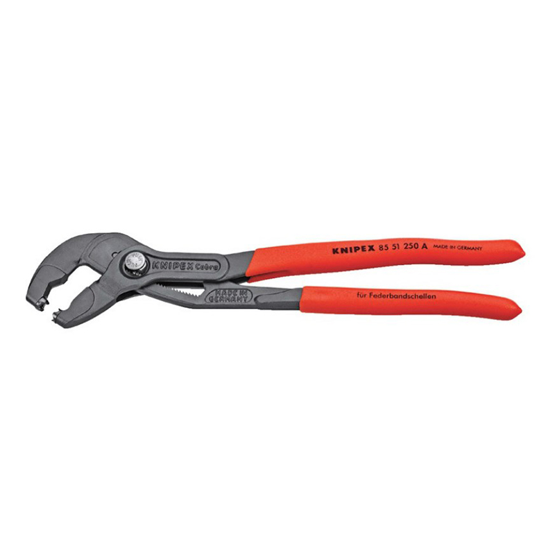 Knipex Letkunsidepihti 250mm. Nerokkaan Cobra-pikasäädön ansiosta samat pihdit sopivat monille eri jousikuormitteisille letkunsiteille. Suurin leukojen aukeama 80mm. Vapaasti kääntyvät tartuntapäät tarttuvat luotettavasti kiinni siteisiin kaikissa asennoissa.