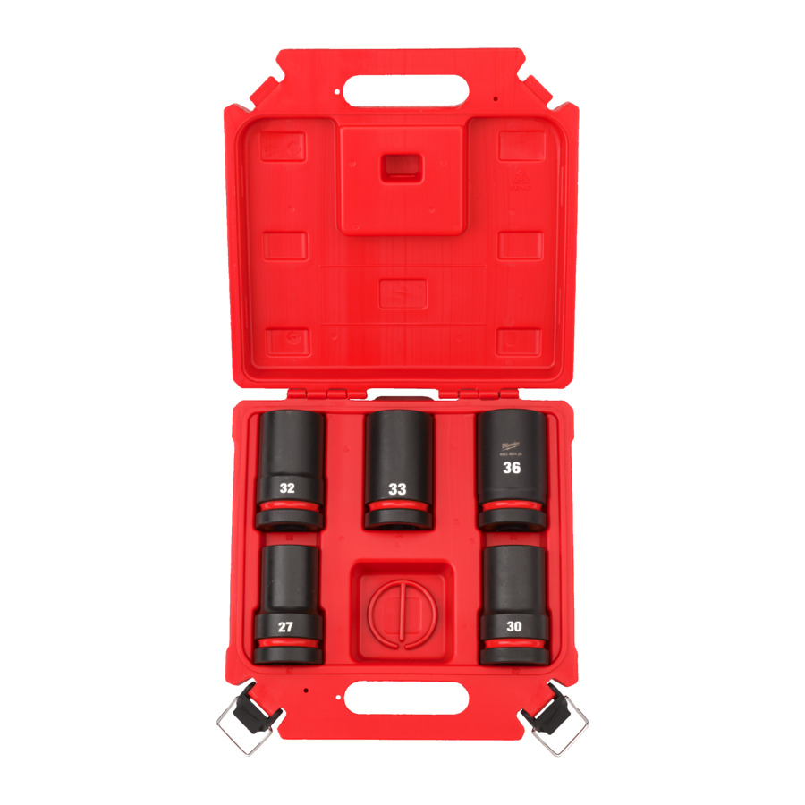 Sisältö: 1˝ deep socket: 27,30,32,33,36 + safety ring + blow molded BMC