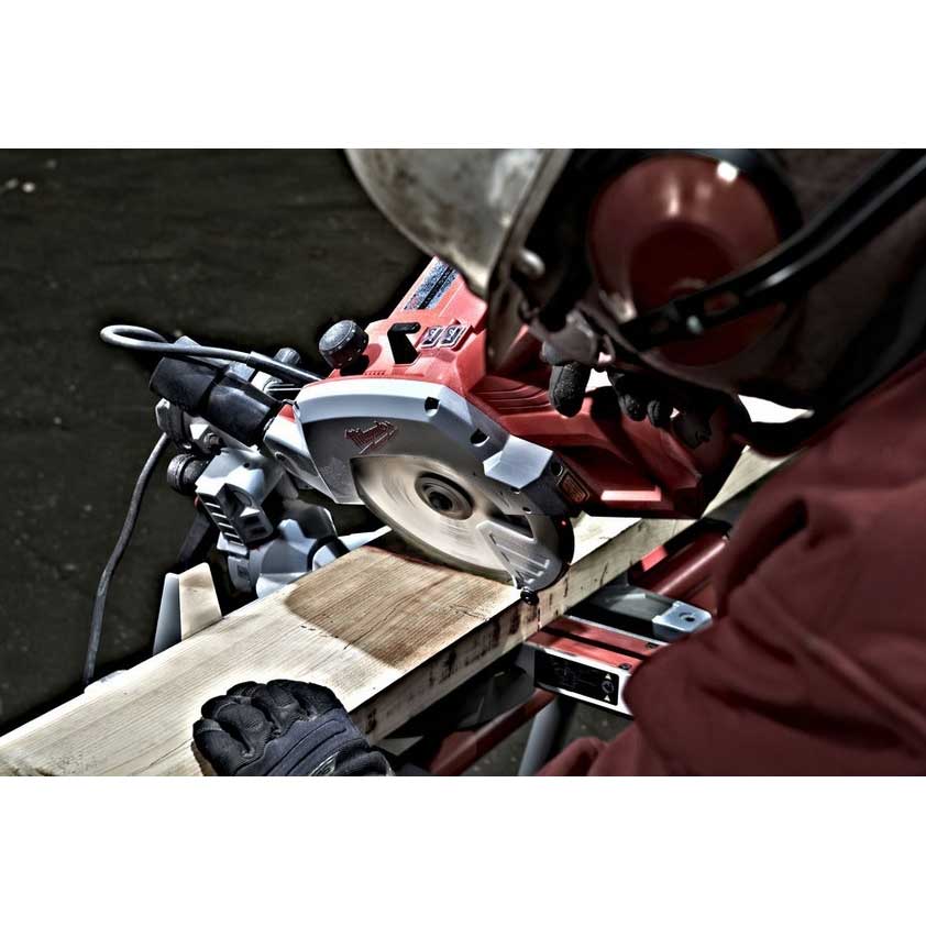 - Mukana toimitetaan sahanterä (48 hammasta), teräavain ja työkappalepuristin