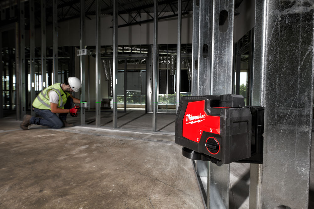 - Kirkkaan vihreät laserlinjat tuottavat 30 metrin työskentelyalueen ja jopa 100 metrin alueen tunnistimen kanssa