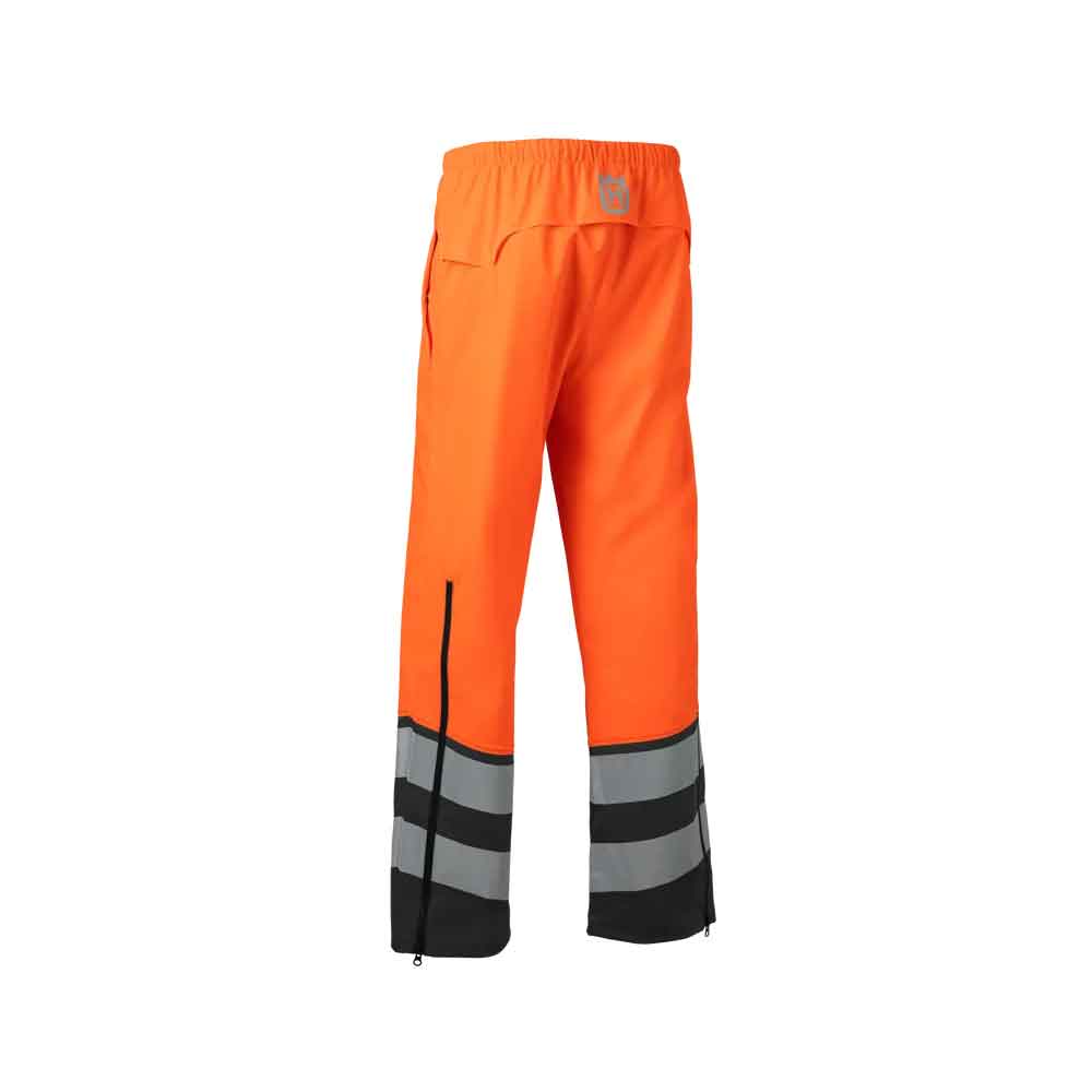 Polyesterineuloksesta valmistetut sadehousut, joissa on kestävä yksipuolinen PU-pinnoite ja hitsatut saumat. Kangas on vahvaa, mutta kuitenkin kevyttä ja kahisematonta. Lahkeiden sivussa olevat vetoketjut helpottavat alla olevien housujen käyttöä. Vyötäröllä kuminauha ja kiristysnaru säätöä varten ja takana tuuletusaukot. Edessä olevat aukot helpottavat alla olevien housujen käyttöä. Hyväksytty standardin EN ISO 20471 luokan 2 ja standardin EN343 mukaisesti.