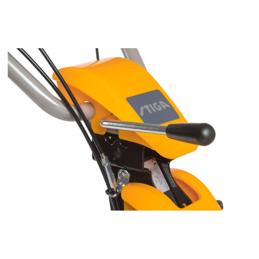 STIGA SRC 550 RG -jyrsimessä yhdistyvät käyttömukavuus ja hallittavuus. SRC 550 RG –jyrsimen voimanlähteenä on 123 cc (1,66 kW) nelitahtipolttomoottori, jossa on kaksi vaihdetta (1 eteen ja 1 taakse), mikä mahdollistaa maan muokkaamisen kasvimailla ja pelloilla, vähemmillä siirtymisestä aiheutuvilla ponnisteluilla. Neljä roottoria (kaksi kummallakin puolella), joiden työleveys on 50 cm ja -syvyys 20 cm, varmistavat, että paakut on asianmukaisesti hajoitettu ja maaperä on tehokkaasti sekoitettu ja valmiina kylvöä varten. Puunsäästökiekkojen ansiosta jyrsintä voi käyttää turvallisesti myös puiden lähellä. Aisan korkeutta ja kulmaa voi säätää mahdollisimman mukavan työskentelyasennon löytämiseksi. SRC 550 RG -jyrsintä on helppo siirtää sen kahden takana sijaitsevan kuljetuspyörän avulla.