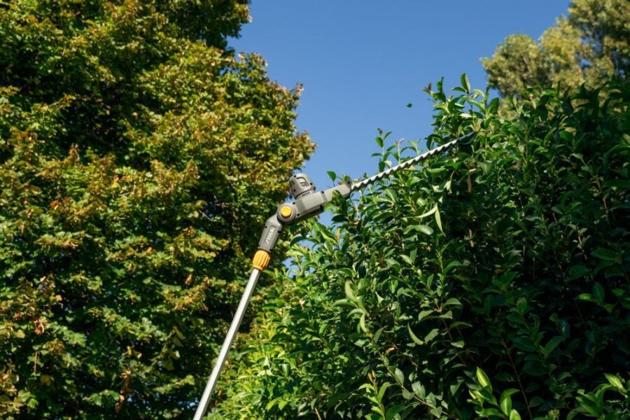 Unohda tikkaat ja mahdollinen vaarallinen kiipeily puissa. Kevyt, johdoton MT 500e Kit -puutarhan monitoimilaite on korkealle ylettyvä akkukäyttöinen pensasleikkuri ja oksasaha – vapaa melusta ja pakokaasuista jotka ovat tyypillisiä polttomoottorikäyttöisille vastaaville työvälineille. Tehokkaan 48V, 2 Ah akun ja sen pensasleikkurin kestävän laserhiotun kaksoisterän sekä oksasahan 25 cm laipan ansiosta MT 500e Kit -monitoimilaite leikkaa sujuvasti. Jotta yllät korkeisiin puihin ja pensaisiin on tässä monitoimilaitteessa 75 cm teleskooppinen jatkovarsi, minkä avulla yllät pensasleikkurilla jopa 4,30 metrin korkeuteen ja oksasahalla jopa 4 metrin korkeuteen (ilmoitettu pituus perustuu ihmisen keskipituuteen) . Oksasahan laipan korkealaatuinen terä minimoi takapotkut. Laite on myös mukava, sen pensasleikkurin 112° kääntyvä, 6-portainen leikkuupää mahdollistaa työskentelykulman asettamisen siten, että se ei rasita. Ja kahvan sekä runkoputken kosketuspinnan pehmeän kumipinnan, sekä olkahihnan kiinnityskoukun ansiosta työskentelet vahingoittamatta käsiäsi ja raajojasi. Turvallisen, mukavan ja tarkan leikkuun varmistamiseksi MT 500e Kit -monitoimilaitteen oksasahassa on työskennellessä oksia vasten nojaava, oksasahaa tukeva puskuri.