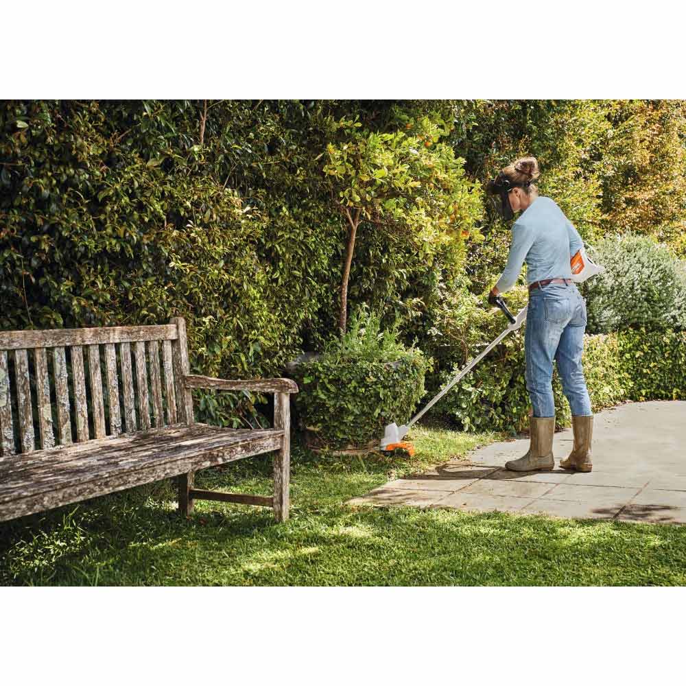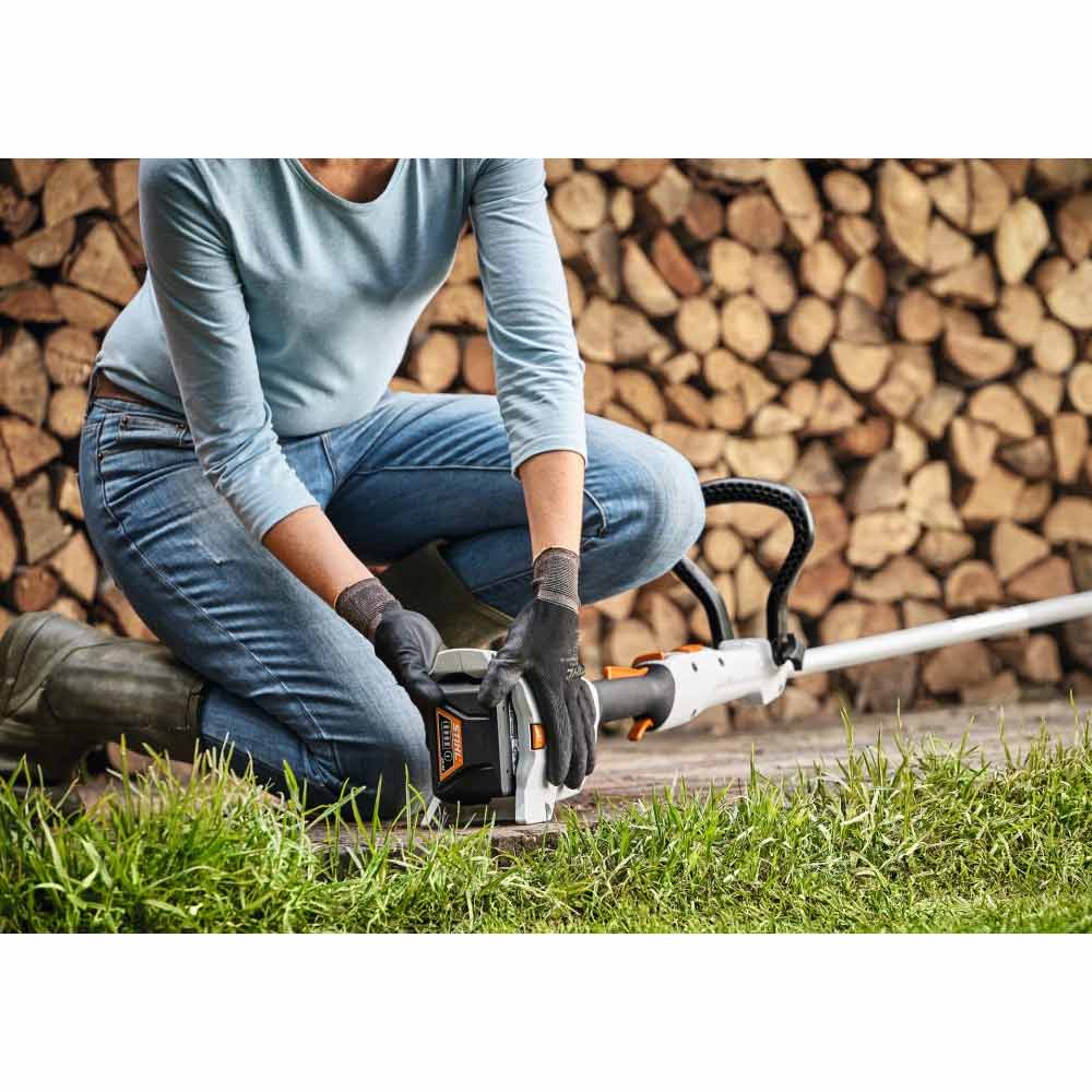 Erittäin kevyt ja helppokäyttöinen akkutrimmeri kotipuutarhan hoitoon. Työleveys 280 mm, varren pituus säädettävissä nupin painalluksella ja kahva säädetään ilman työkaluja. Taimisuojus ruohon leikkuuseen esteiden, kuten puiden ja pensaiden ympäriltä. Pehmeä kahva optimoidulla käyttölogiikalla. Ulkopuolelta ilman työkaluja täytettävä siimapää AutoCut C 3-2. Valinnaisena voidaan käyttää PolyCut 3-2 -siimapäätä terällä. Setissä mukana AK 10 akku ja AL 101 laturi. Kun on aika vaihtaa siimalanka voit helposti vaihtaa siimapään tai lisätä lankaa siimapäähän.