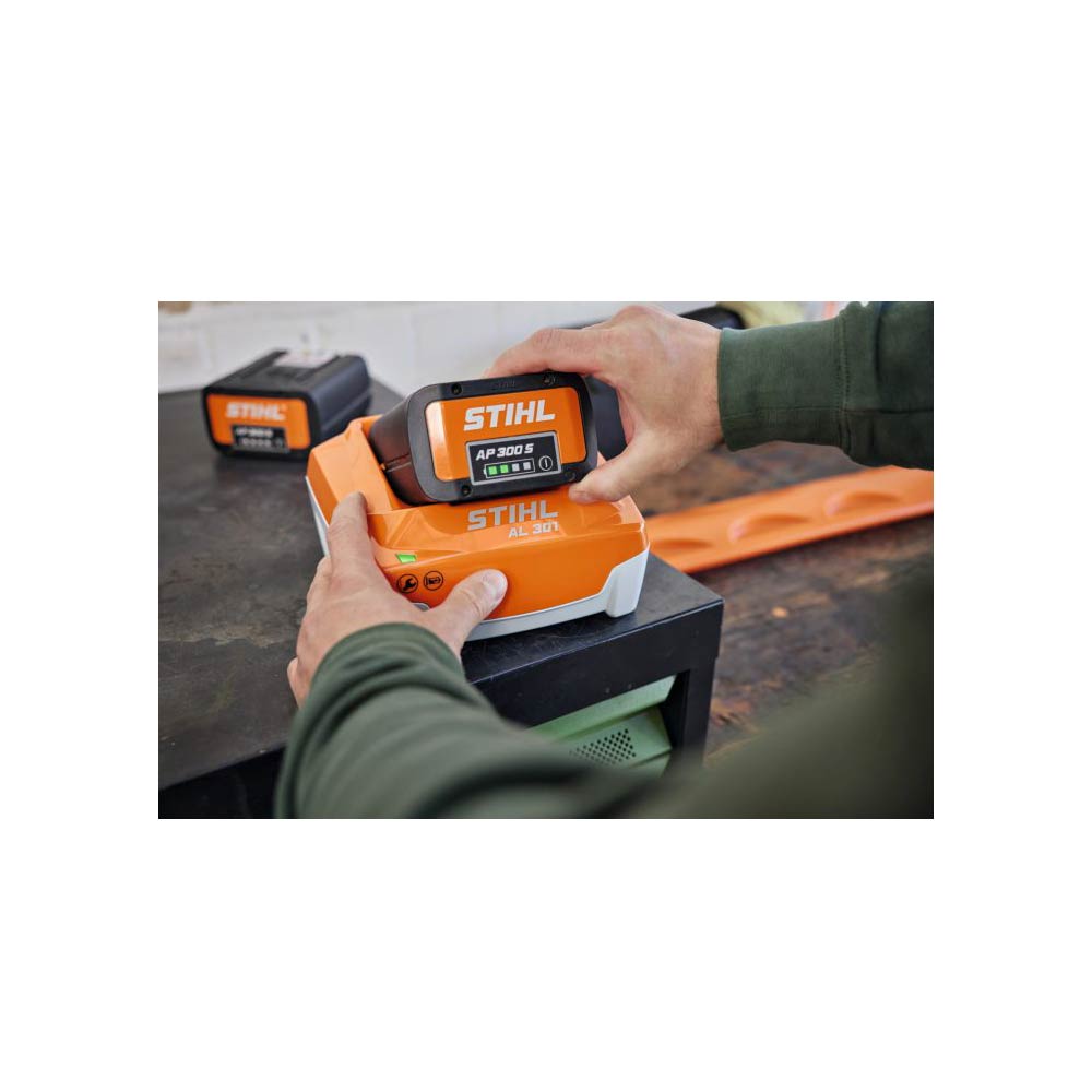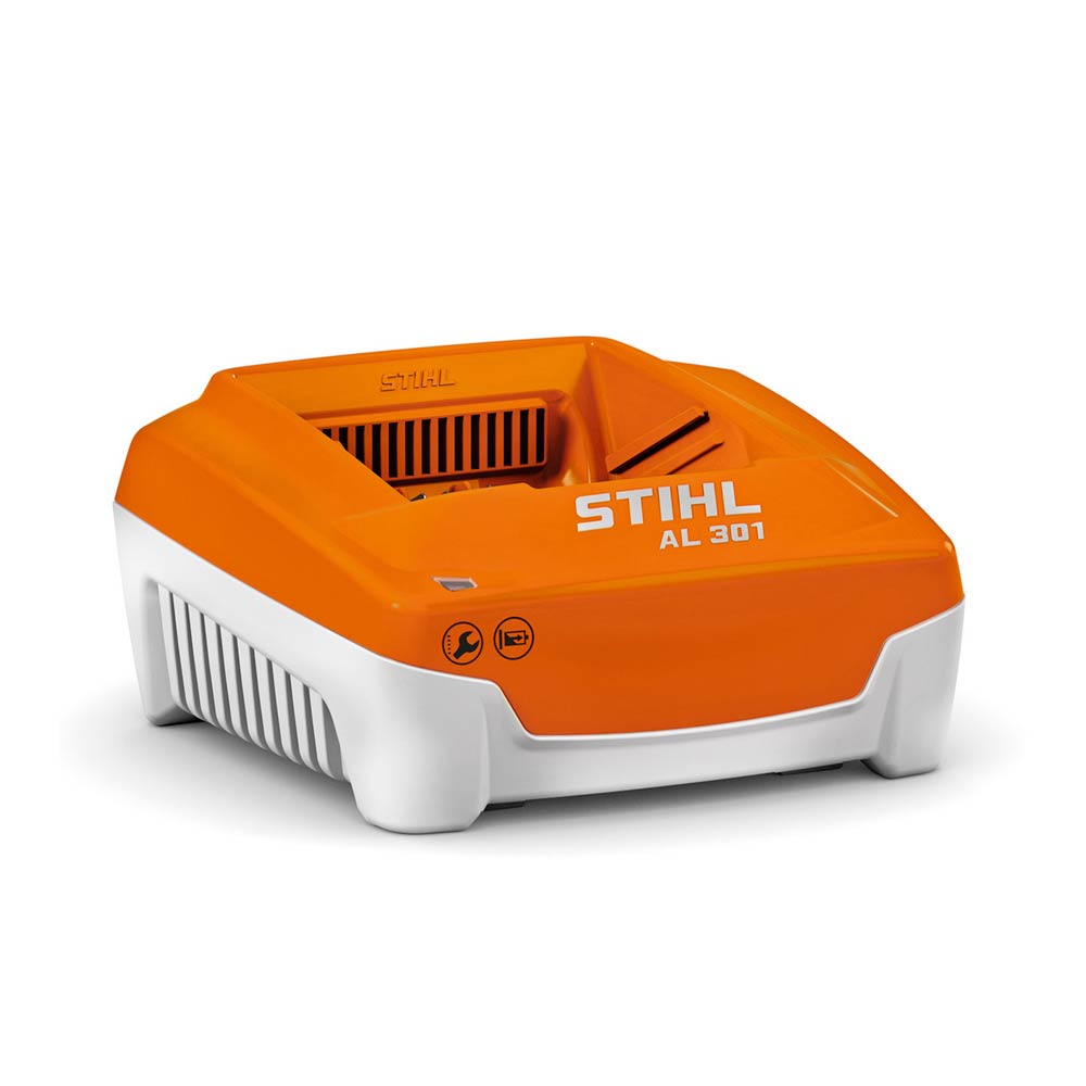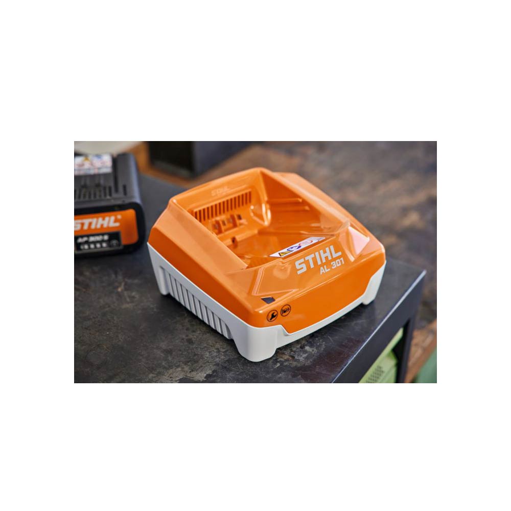 AL 301 pikalaturilla on verkkovirtaa 230 V. STIHL akkujen AK, AP ja AR nopeampaan lataukseen. Toimintavalolla (LED) ja passiivisella akun jäähdyttimellä. Kaapelin sidonta tarranauhalla. Seinäasennus mahdollinen.