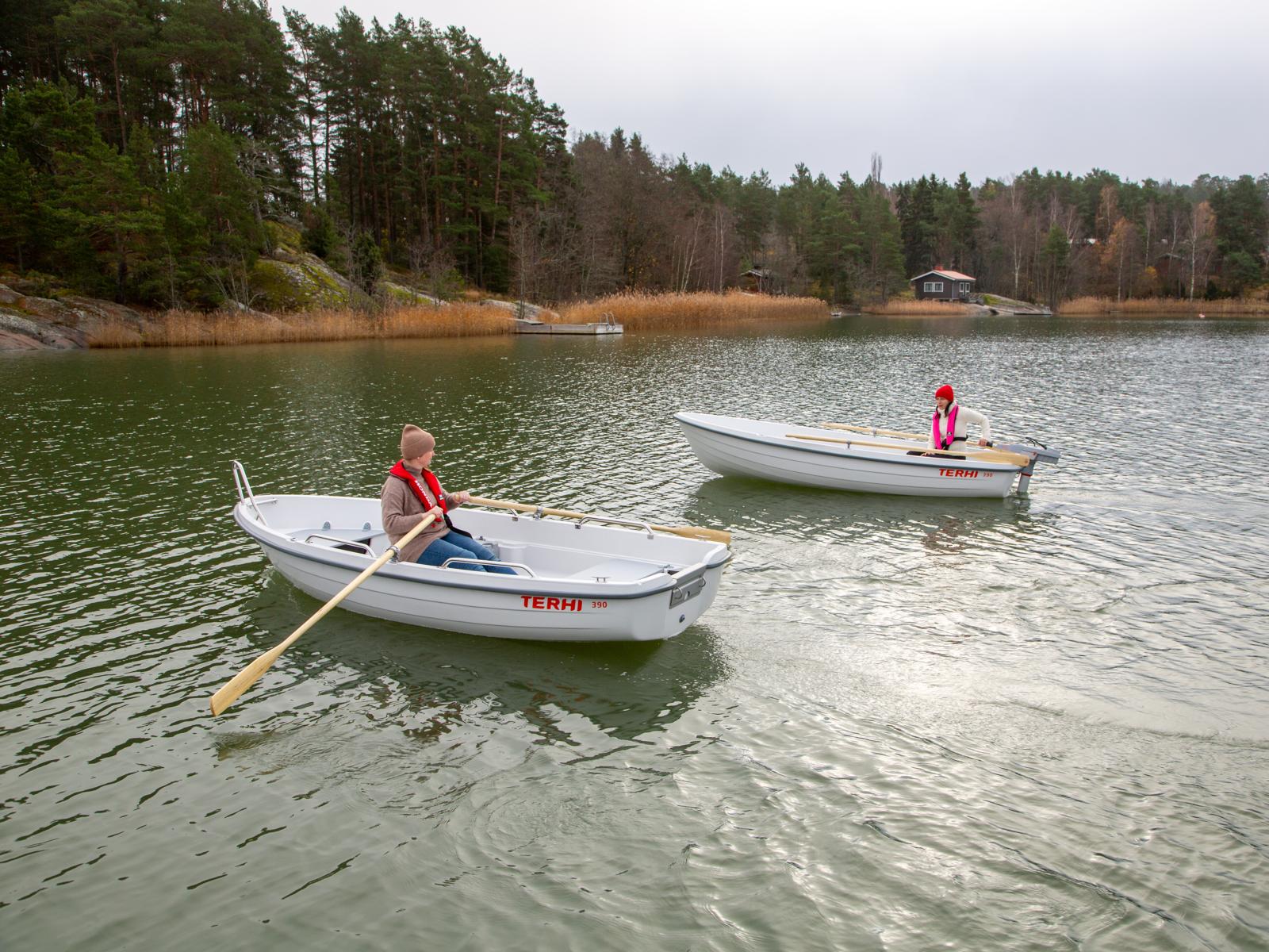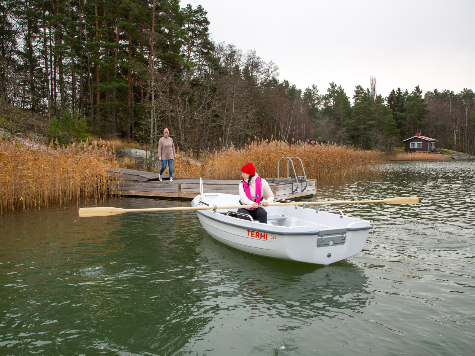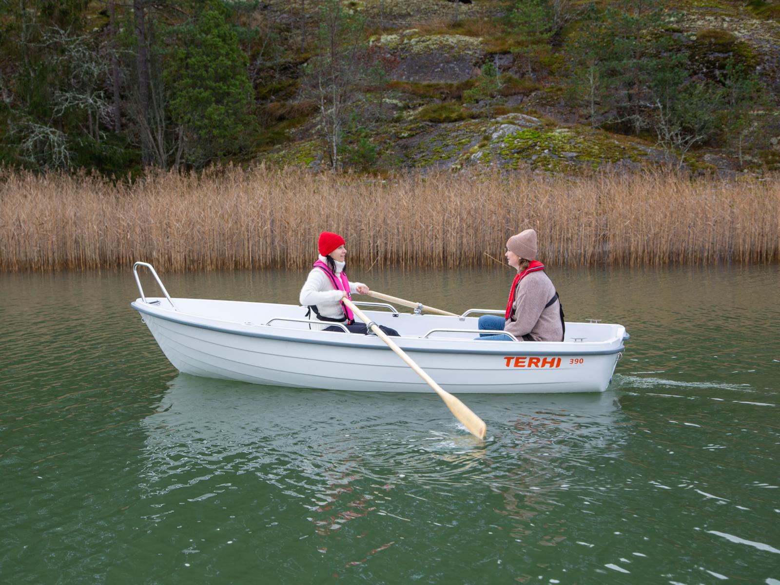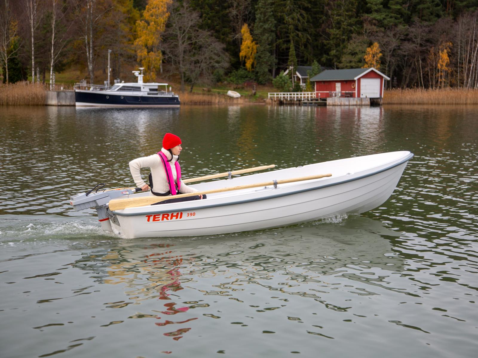 Uudessa soutuveneessämme soutamisen keveys ja moottoriajamisen helppous yhdistyvät tyylikkääseen ulkonäköön. Terhi 390 on kauan odotettu seuraaja Terhin pitkäaikaiselle 385-mallille, jota valmistettiin yli 40 vuoden ajan ja jota löytynee miltei jokaisesta mökkirannasta (tai vähintäänkin mökkinaapurilta). Tämän kestävän ja vakaan soutuveneen perään sopii hyvin myös pieni perämoottori, jolla matka taittuu sutjakkaasti ja iloisesti. Tutustu kauden 2023 uutuusmalliin tarkemmin alta!